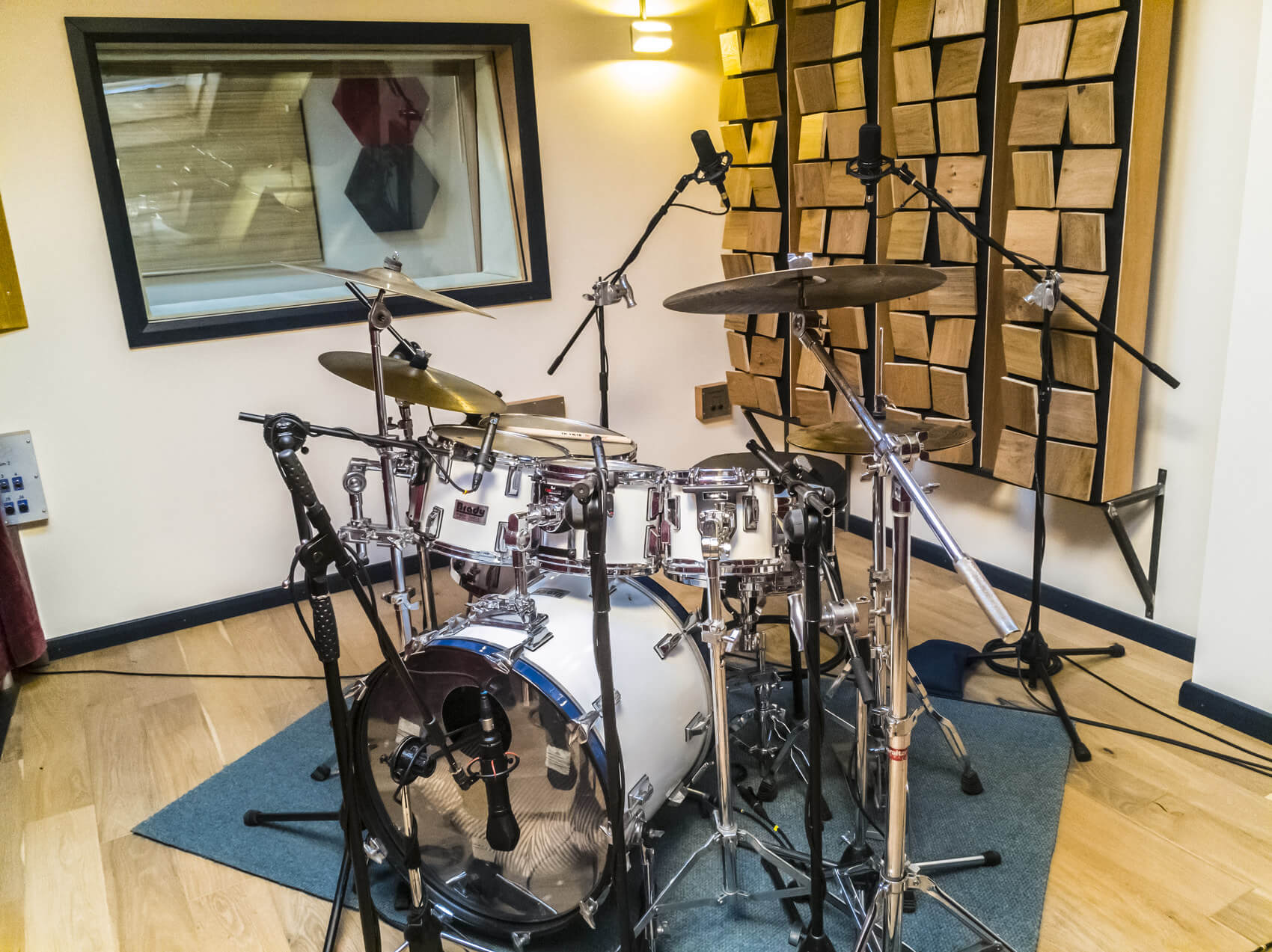 At 3.0 x 2.7 metres, Live Room B can easily accommodate a large drum kit or a few guitar amps. It also features a variable acoustics system to tailor the tone of the room.